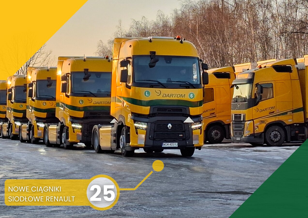 W 2026 roku planujemy rozszerzenie floty o 25 nowych ciągników siodłowych marki Renault.